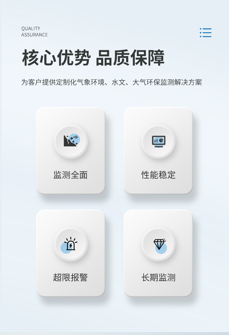 山東萬象環(huán)境科技有限公司主營防爆氣象站,便攜式氣象站,水文監(jiān)測站,GNSS位移監(jiān)測站,校園氣象站,農(nóng)業(yè)氣象站,農(nóng)業(yè)四情監(jiān)測系統(tǒng),負氧離子監(jiān)測站,超聲波氣象站,咨詢熱線:13276362033提供一站式環(huán)境監(jiān)測解決方案,是專業(yè)的農(nóng)業(yè)氣象站廠家,氣象監(jiān)測站設備廠家,可根據(jù)用戶需求定制氣象參數(shù),歡迎來廠參觀!...
